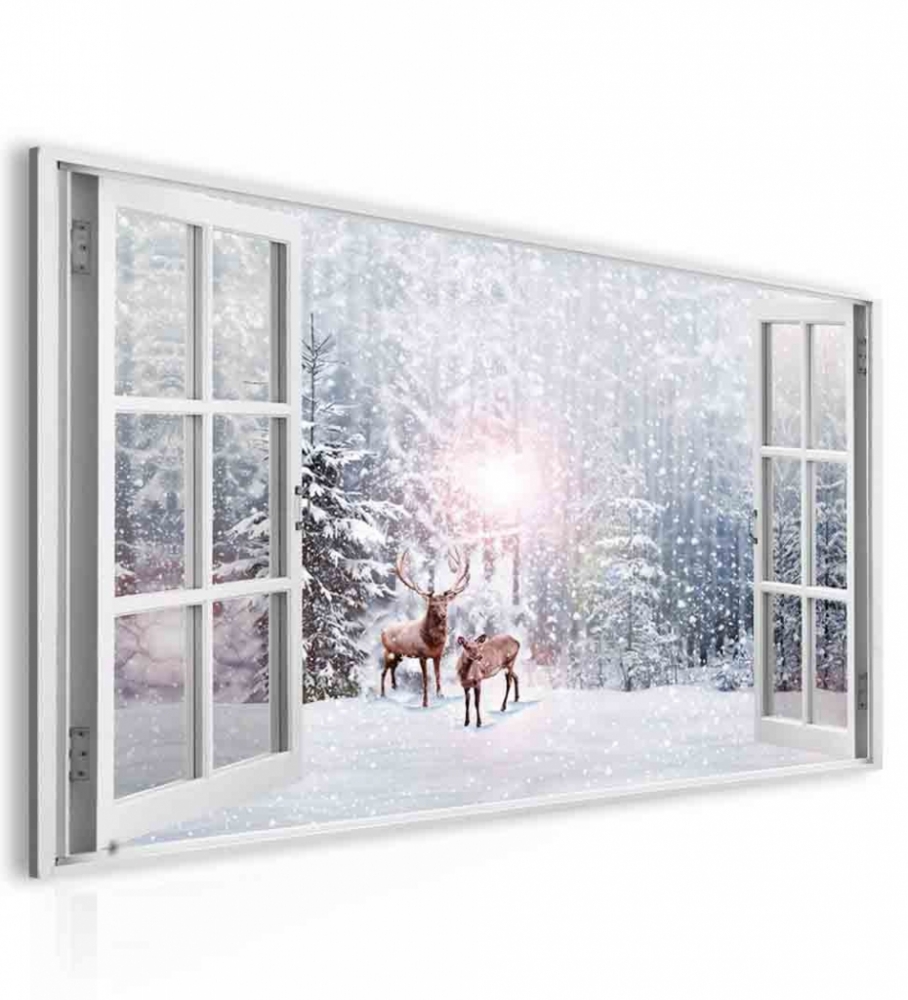 3D obraz Okno jelene v zime,
