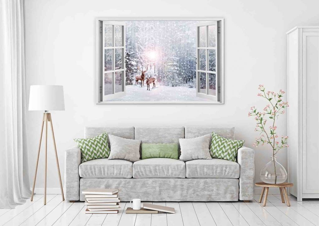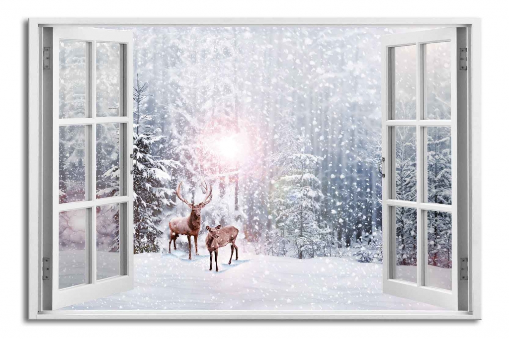 < SPÄŤHome / Nábytok / / / 3D obraz Okno jelene v zime, 60x40 cm
