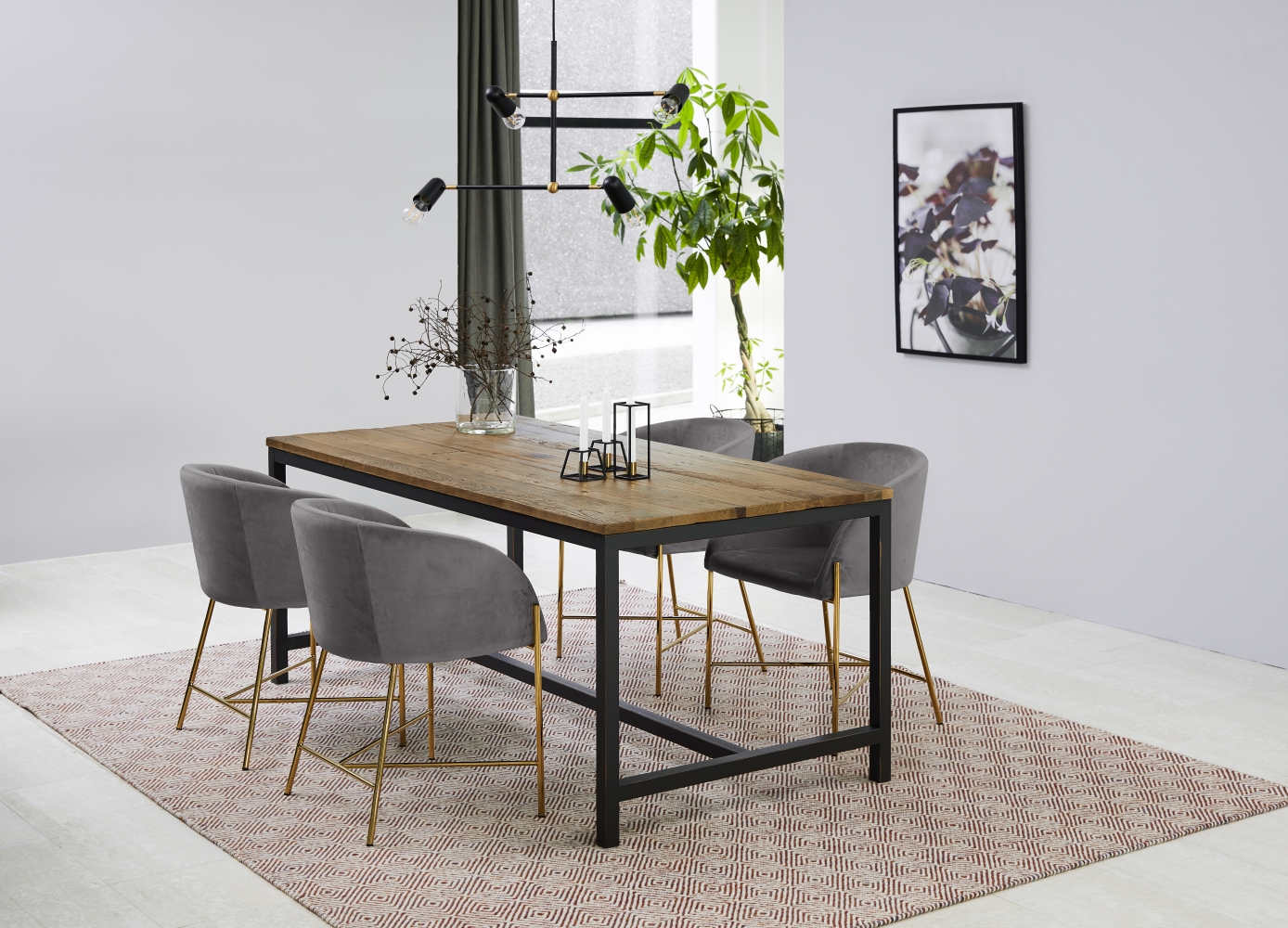 Jedálenská stolička s opierkami Nelson je minimalistický sedací nábytok s kvapkou elegancie a luxusu. Príjemné, mäkké čalúnenie vám zabezpečí maximálny komfort po celú dobu sedenia. Vzdušná kovová podnož zlatej farby je naozaj stabilná a pevná.