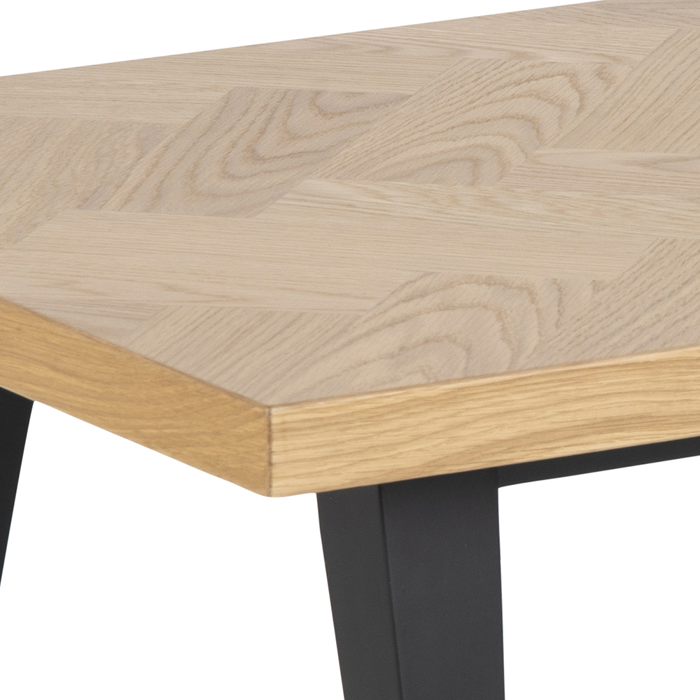 Dizajnový konferenčný stolík Morgan sa stane originálnym prvkom vašej obývačky. Stolová doska v prírodnom odtieni je ozvláštnená geometrickou mozaikou a spolu s čierno lakovanou podnožou tvorí veľmi pôsobivý celok. Tento krásny stolík výborne doladí interiéry zariadené v modernom duchu s prvkami retro a škandinávskeho štýlu.