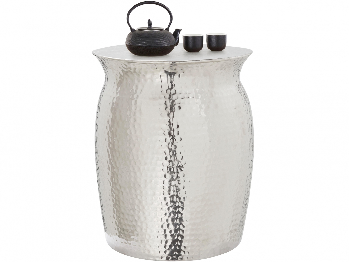 Odkladací stolík Lori je luxusný stolík v striebornej farbe s jemnými prvkami v orientálnom dizajne. Na prvý pohľad vás zaujme jeho neobvyklý tvar. Odkladacia plocha vám ponúkne priestor na odloženie novín, TV ovládača či kvetín.
