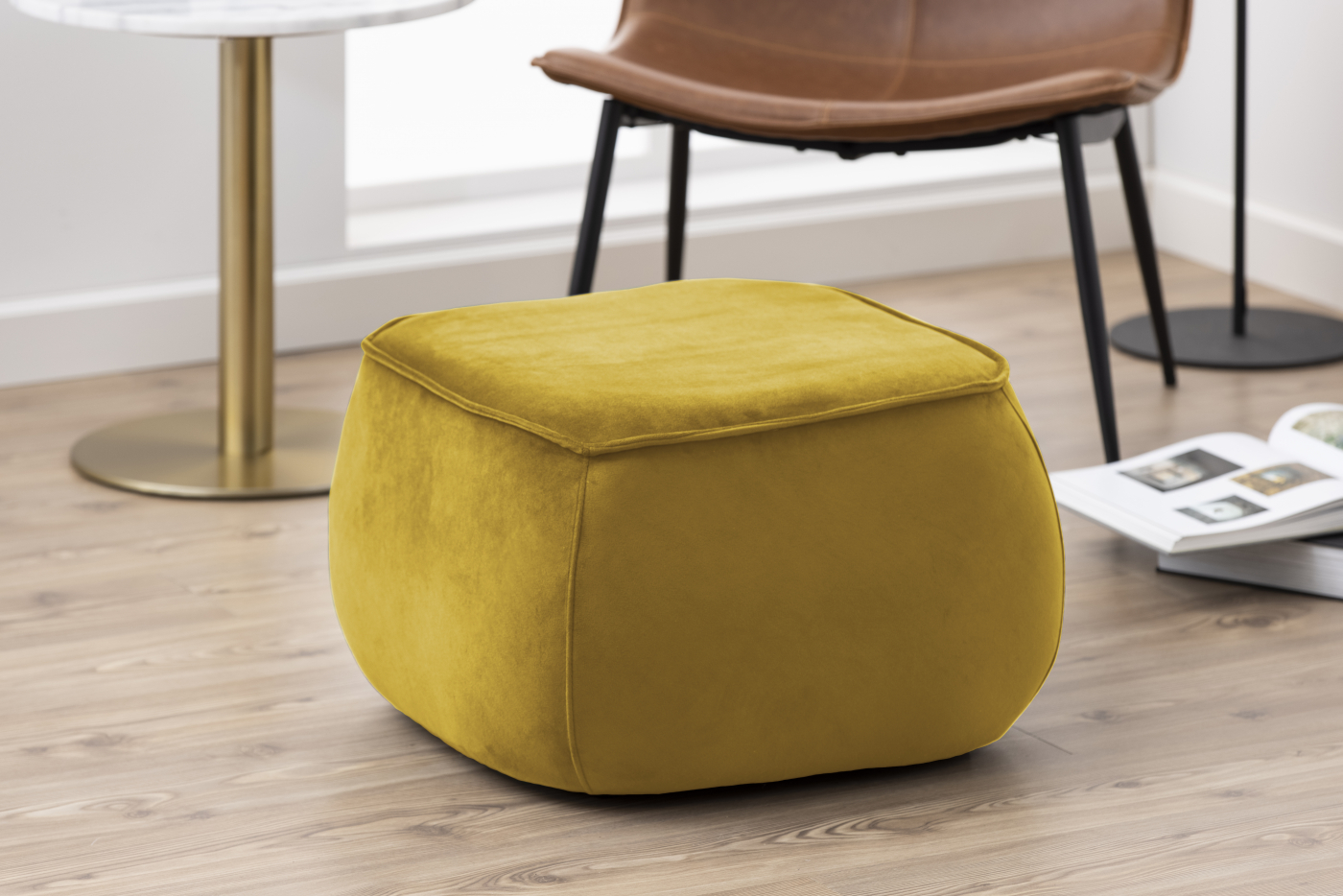 sedák očalúnený príjemnou zamatovou látkou v žltej farbe
