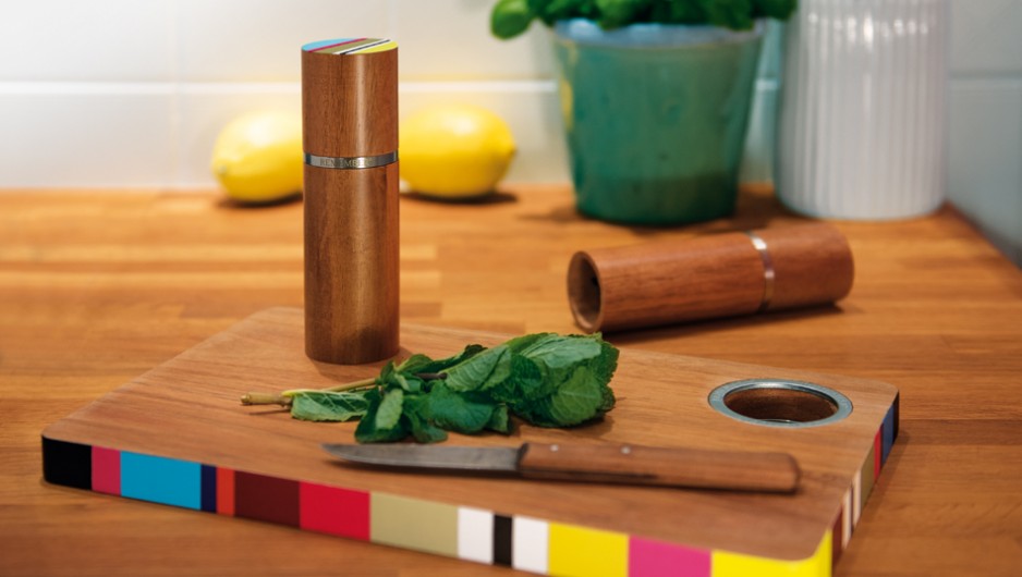 prázdne miesto krúžku v doske môžete doplniť mlynčekmi na soľ a peper