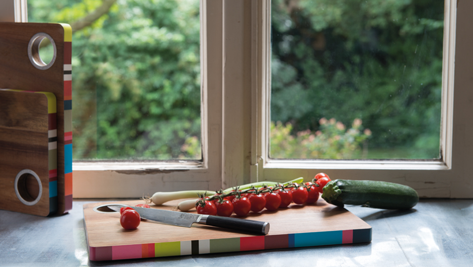 Vďaka Doske na krájanie z agátového dreva Verano si užije varenie i úplný začiatočník! Jedná sa totiž o výnimočný kúsok, ktorý bol vyrobený ručne z dreva, ktoré má výborné rezné vlastnosti. Po obvode sa nachádza prúžok s celou paletou farieb, ktorý ladí so zbytkom dizajnu dosky. Preto poslúži i ako servírovací podnos. Všimli ste si tiež krúžok z nerezovej ocele, ktorý je doplnený slučkou z pravej kože? Ten je ideálny pre zavesenie dosky kdekoľvek v kuchyni.