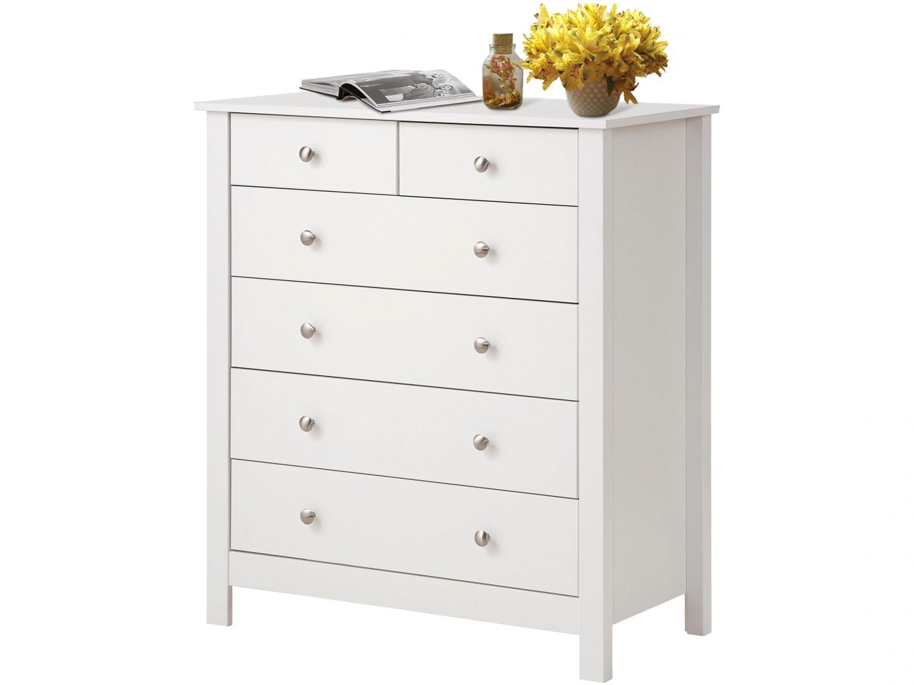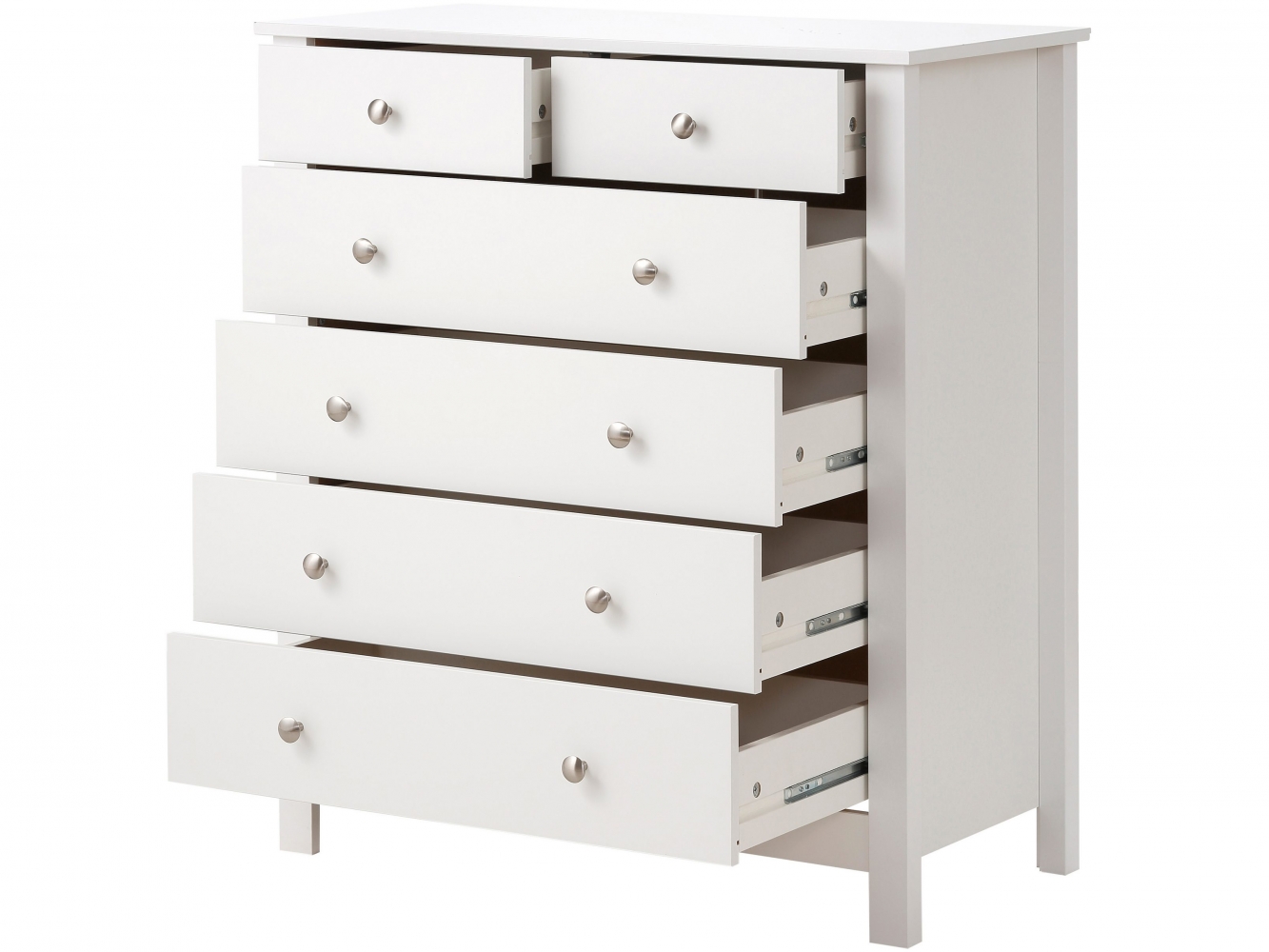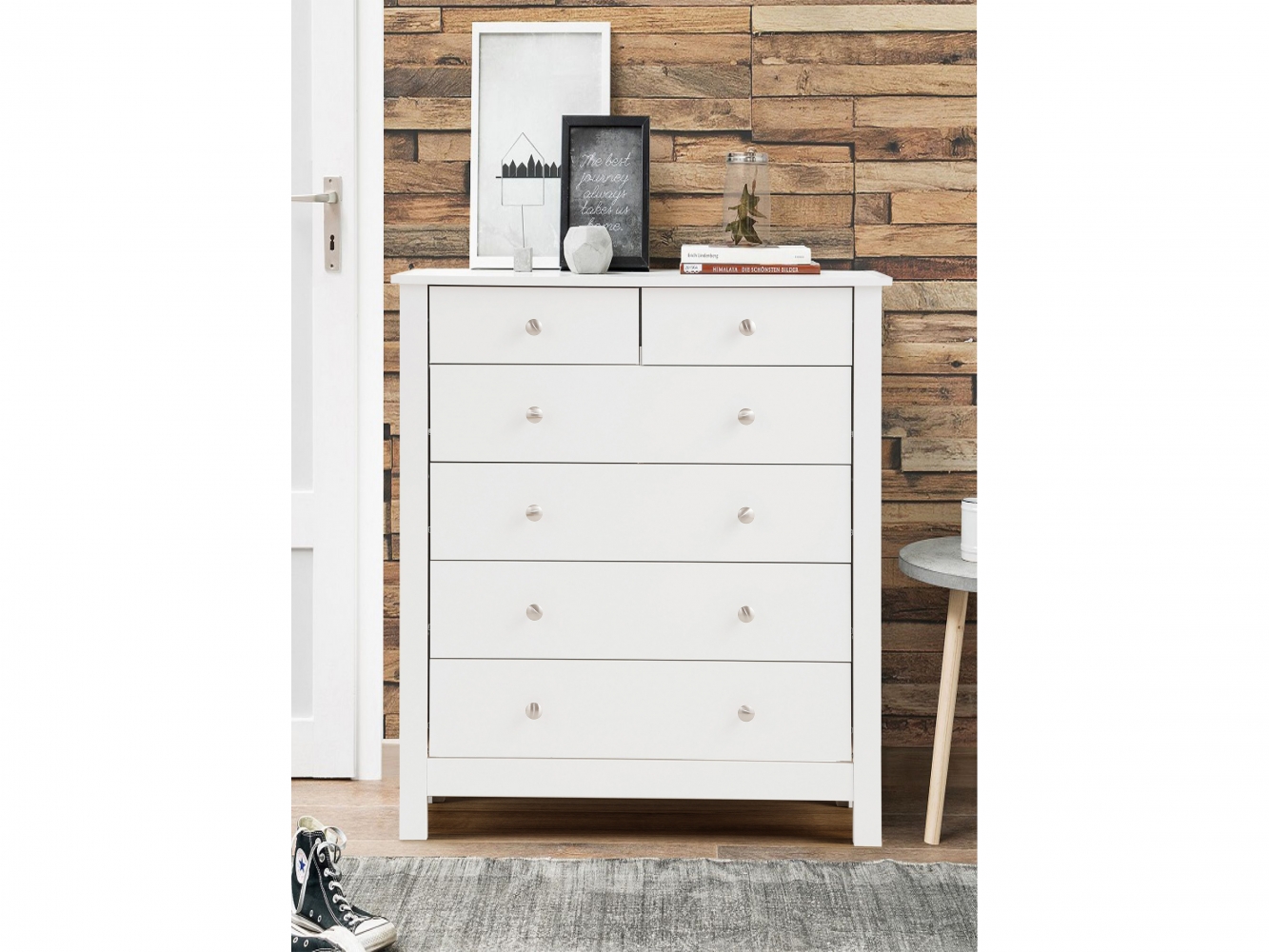 Moderná komoda July skvele doplní každú modernú spálňu či obývačku. Ale hlavne ide o praktický úložný priestor so šiestimi zásuvkami. Komoda je vyrobená z MDF bielej farby.