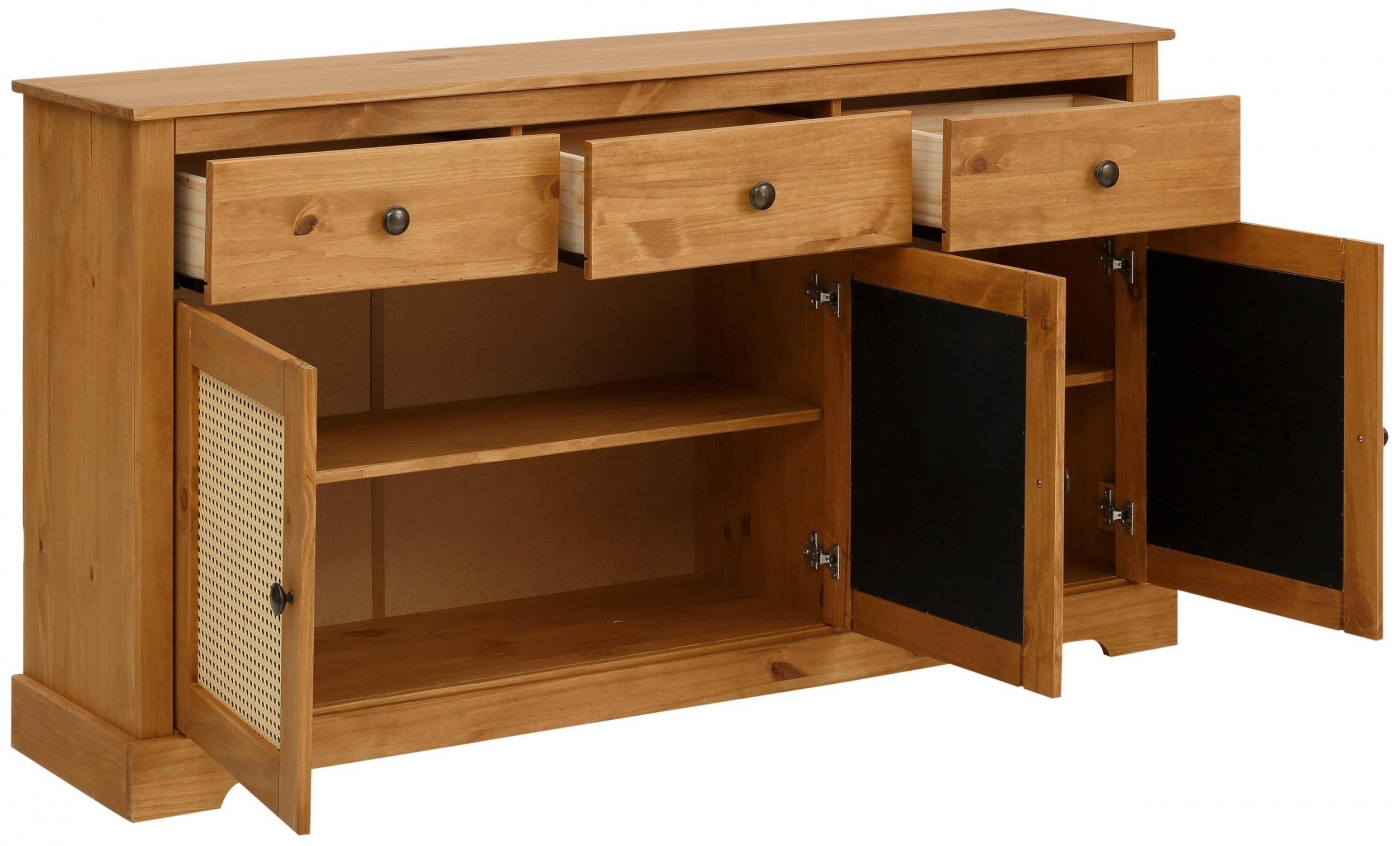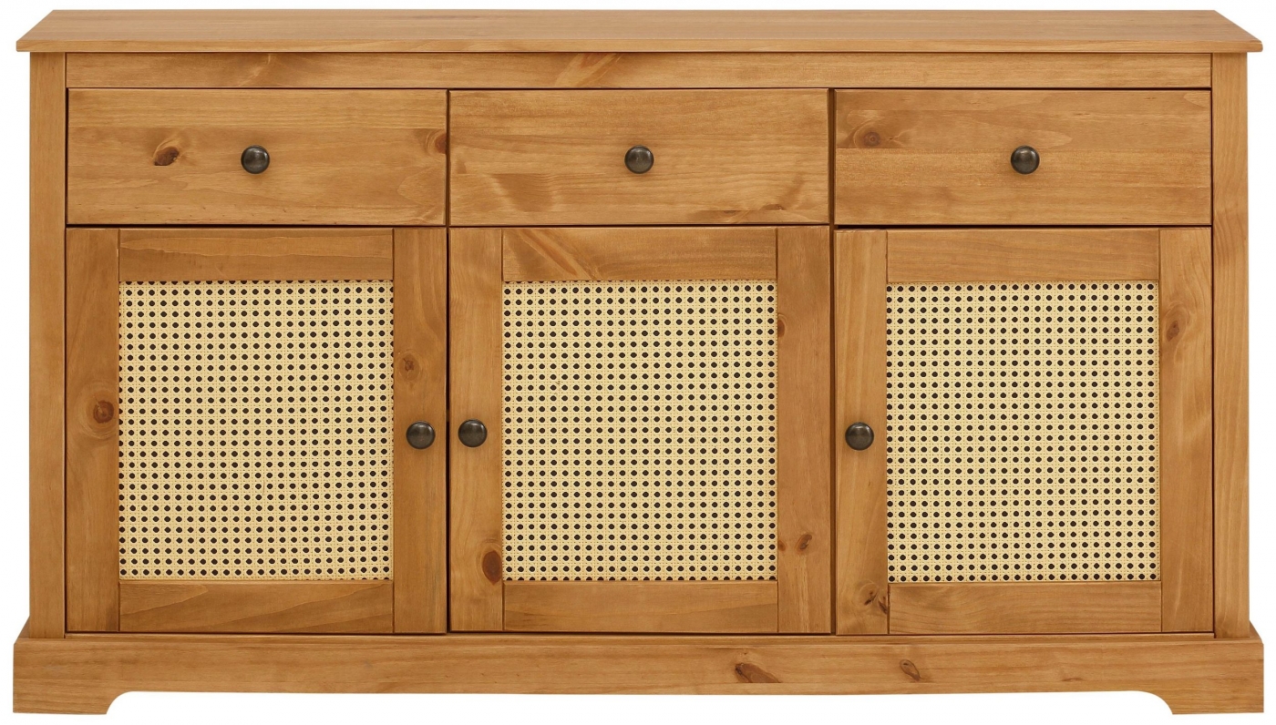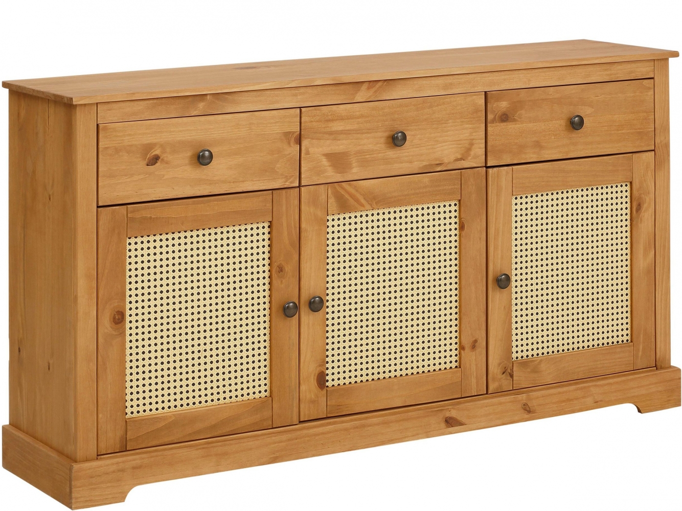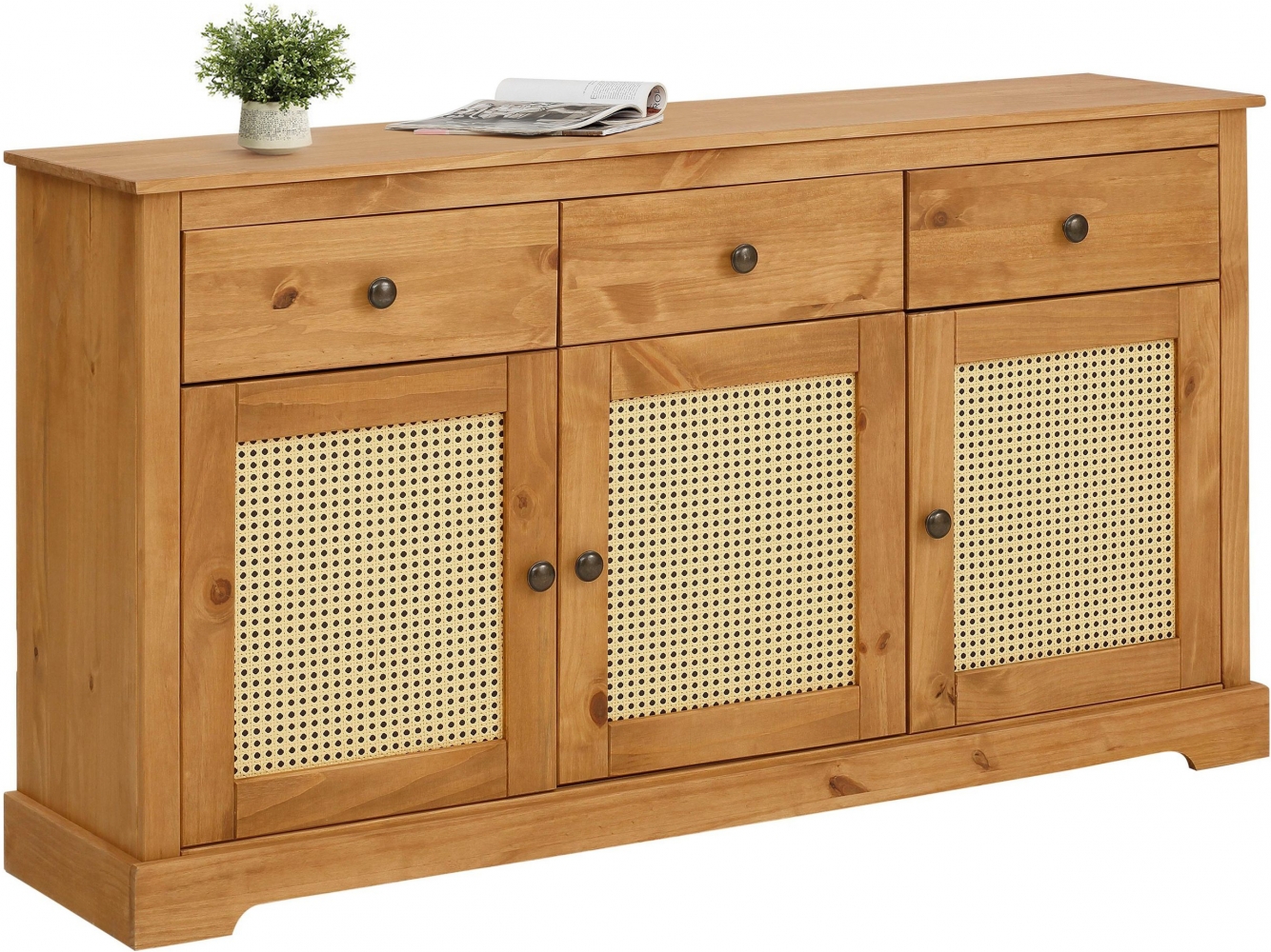 Komoda Kiria je drevený nábytok vo vidieckom štýle. Kvalitné spracovanie je doplnené o ratanové detaily, ktoré vás uchvátia hneď na prvý pohľad.