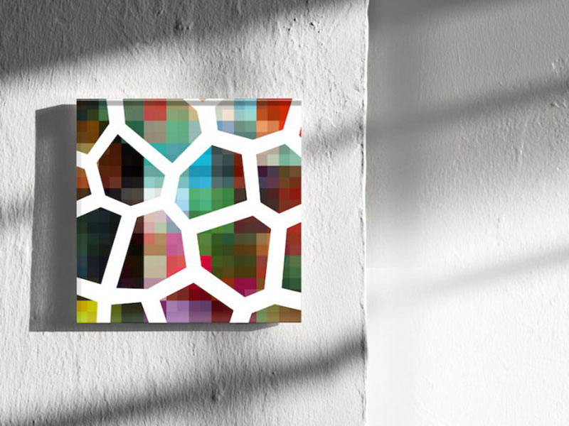 Obraz z akrylového skla Edition Nr. 141007 je exkluzívny interiérový doplnok na zavesenie na stenu. Farebné plochy na tomto obraze sú oddelené bielymi plochami, ktoré svojím tvarom pripomínajú včelie plásty. Tak v rýdzo modernej dekorácii môžete objaviť kúsok prírody. Farebné akrylátové sklo vo vysokom lesku je pripevnené na pevnej hliníkovej platni a pre ľahké zavesenie je obraz na zadnej strane opatrený kovovým uškom.
