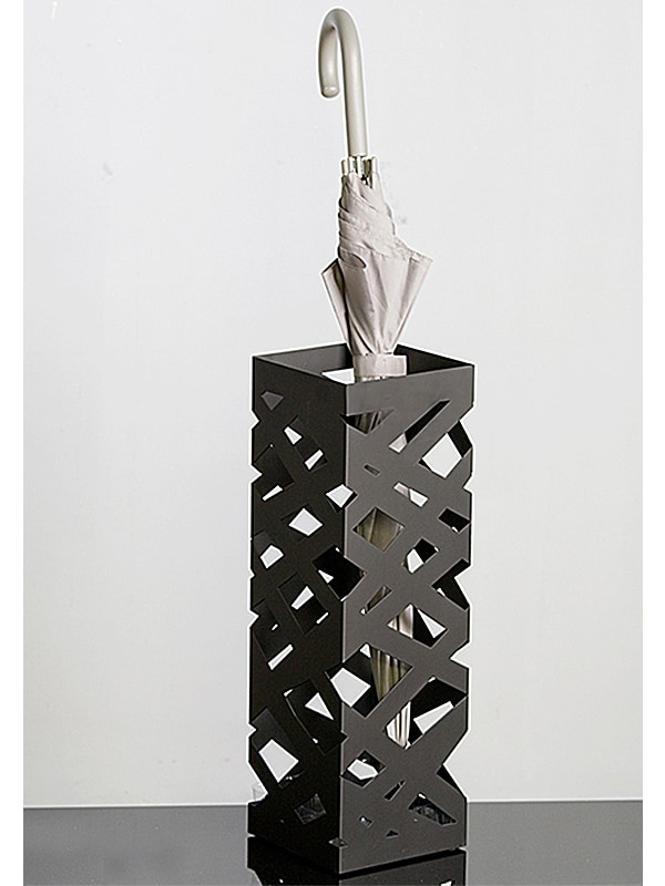 Dizajnový stojan na dáždniky Mikado vám pomôže vkusne skladovať alebo odkladať dáždniky vo vstupnej hale, chodbe či predsieni. Pevná kovová konštrukcia stojanu a dostatočná výška 48 centimetrov umožní skladovanie aj pomerne veľkých dáždnikov. Stojan vyzerá, akoby bol vytvorený zo zdanlivo chaoticky cez seba poskladaných kovových pásov. Je to súčasne vkusný a zaujímavý doplnok, ktorý prispeje k dekorovaniu vašej predsiene.