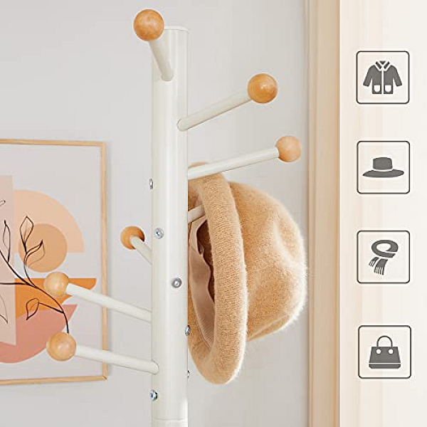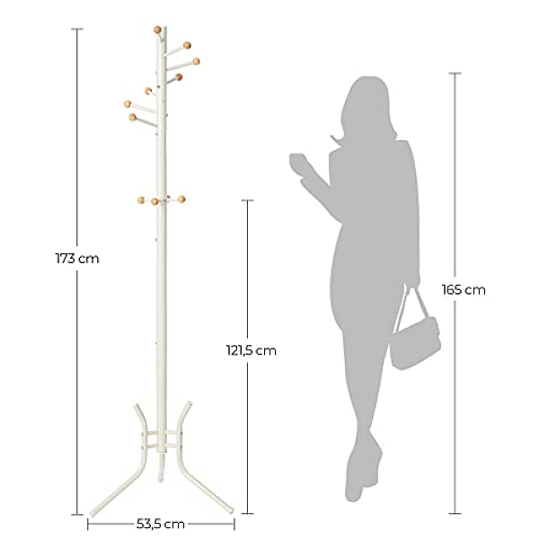 Stojanový vešiak Timo vám bude štýlovou ozdobou každej predsiene či chodby. Osem háčikov na kabáty, tašky, kabelky a pokrývky hlavy vo výške 175 cm zaistí, aby žiadny kus vašej garderóby neležal na zemi.